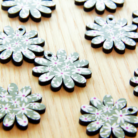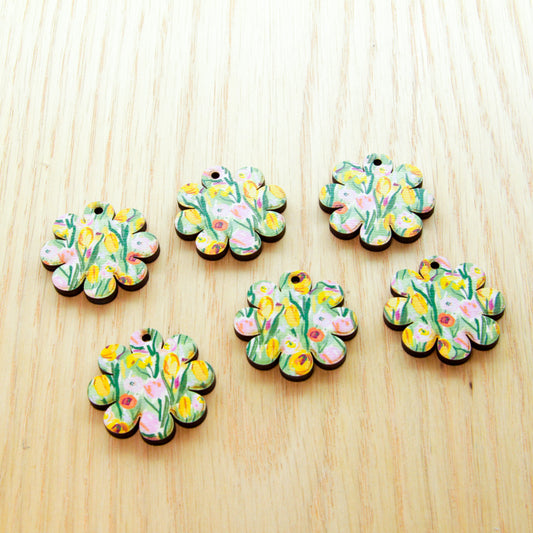 Wood - 3cm Flower - 1 hole - Floral Garden - 52