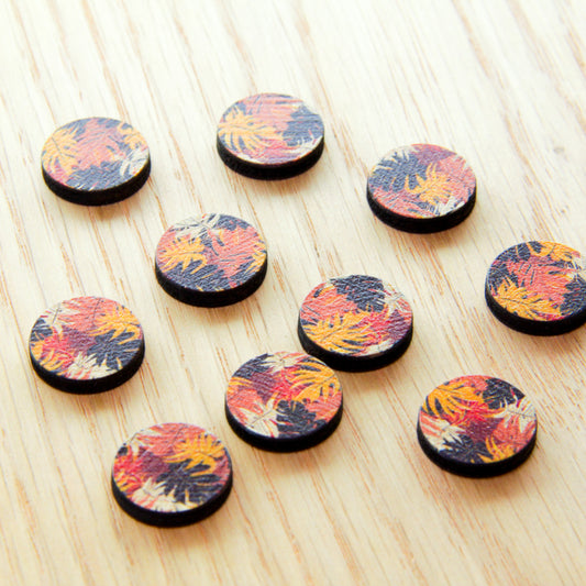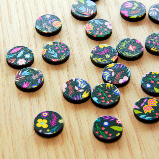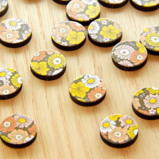 Wood - 15mm Circle- Studs - Abstract Floral - 99
