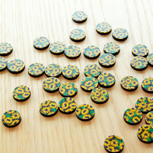 Wood - 15mm Circle- Studs - Sunflower - 01