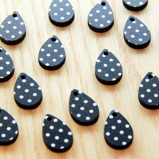Wood - 20mm Teardrop 2 Shape - Black & White - 16
