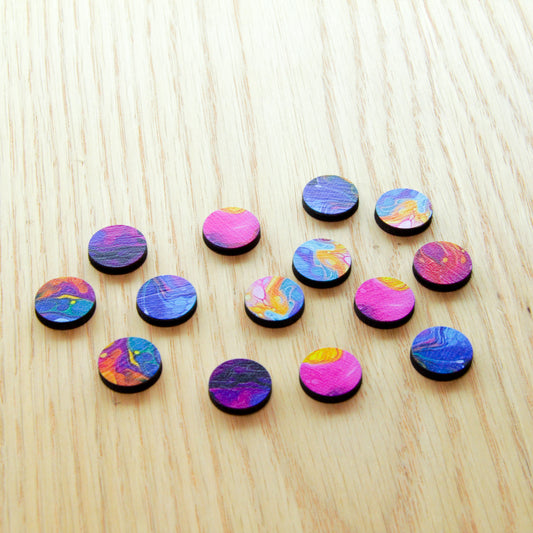 Wood - 15mm Circle- Studs - Alcohol Ink- 21