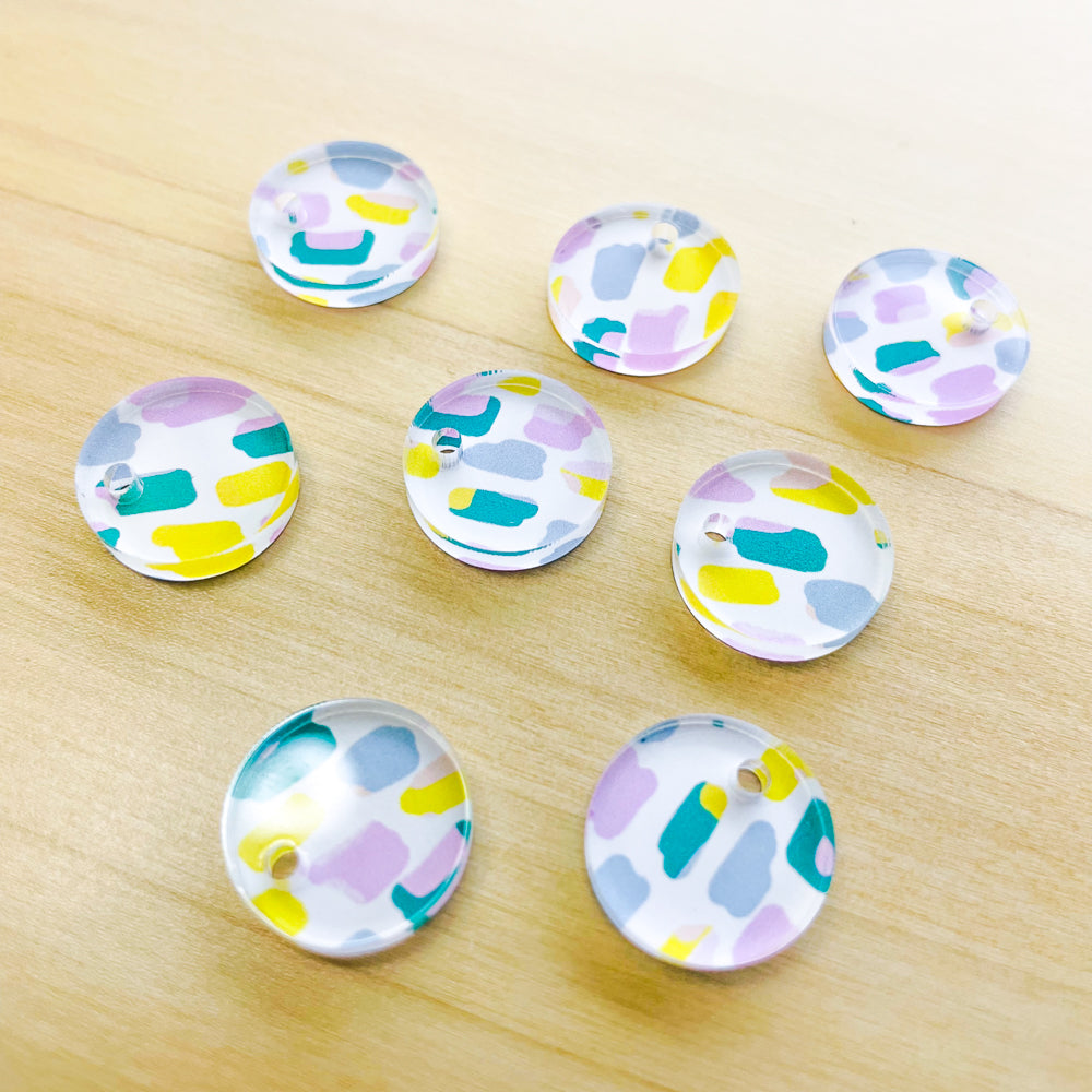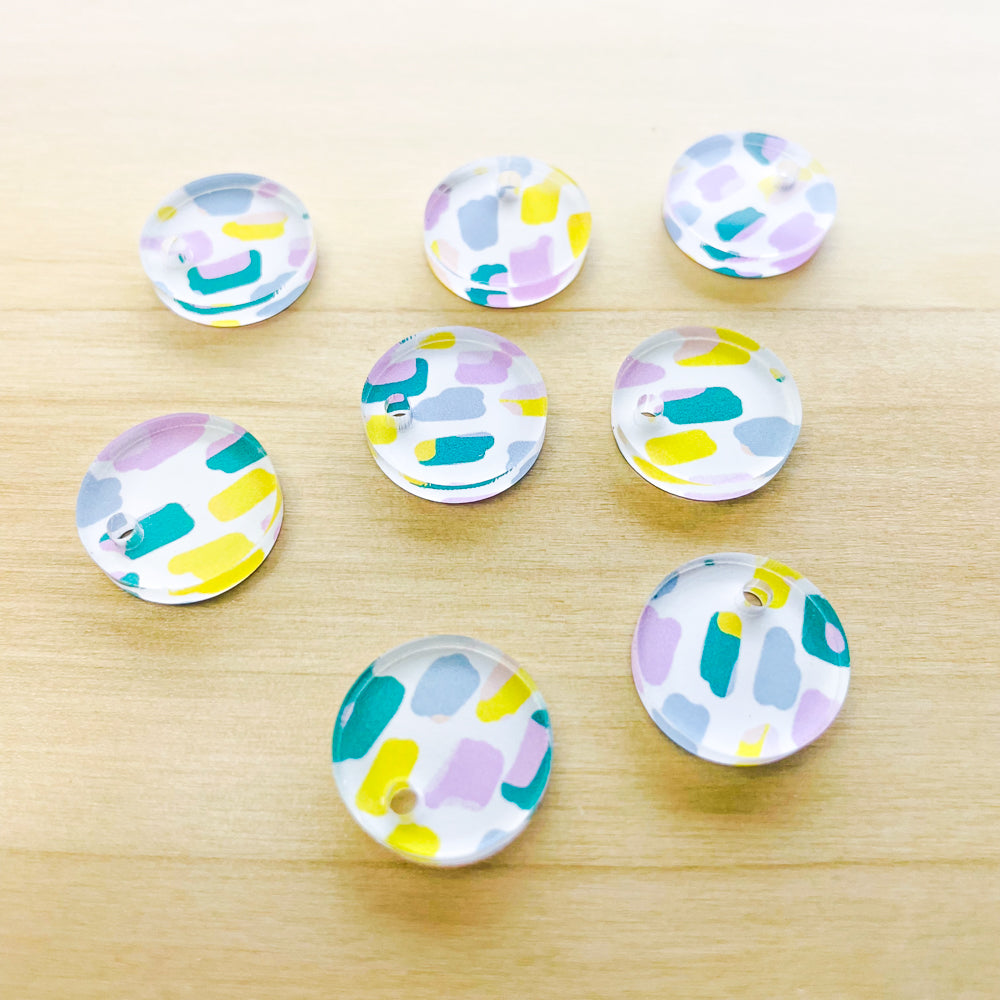 1.5cm Circle - 1 hole - Clear Acrylic - Beach Picnic - 08