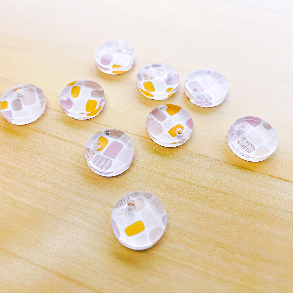 1.5cm Circle - 1 hole - Clear Acrylic - Boho - 07