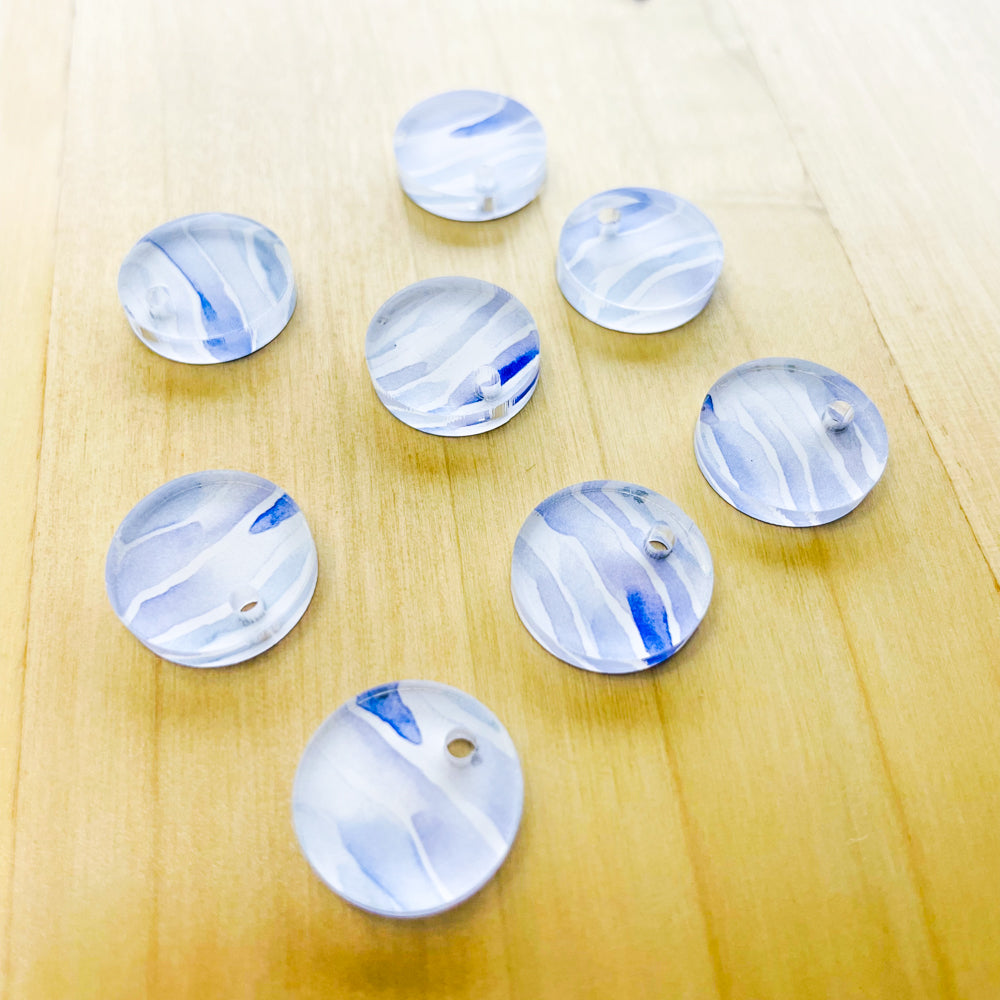 1.5cm Circle - 1 Hole- Clear Acrylic - Shibori - 12