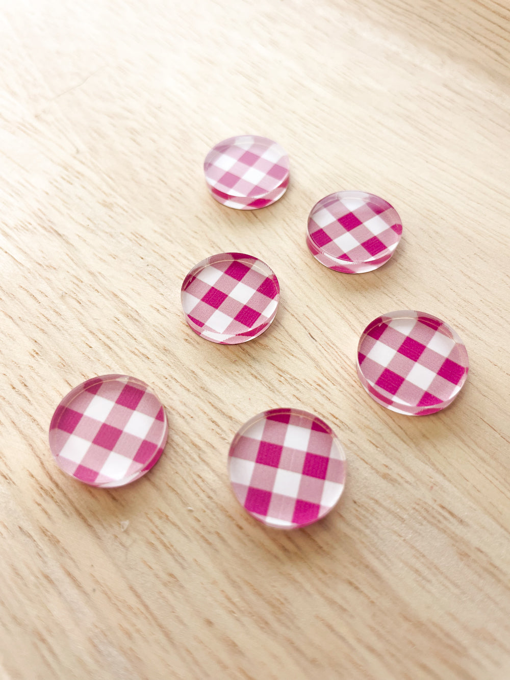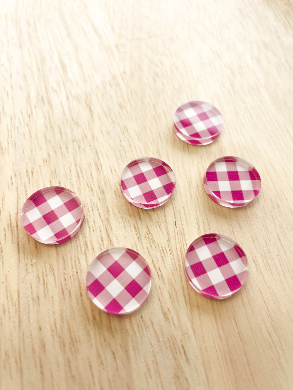 1.5cm Circle - Studs- Clear Acrylic - Basic Gingham - 17