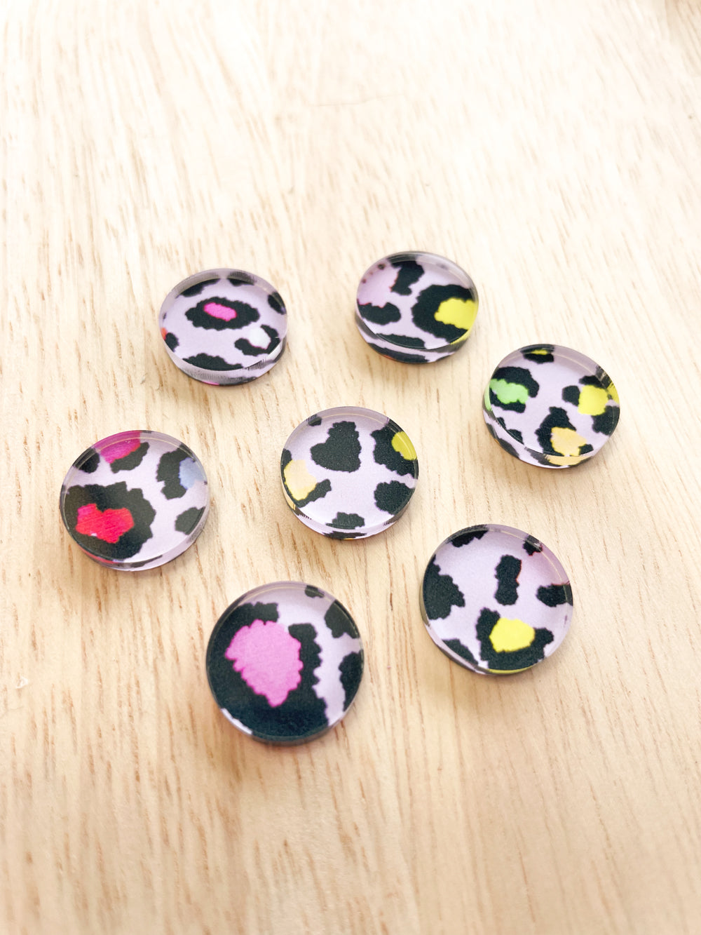 Clear Acrylic - 1.5cm Circle - Studs - Leopard - 20