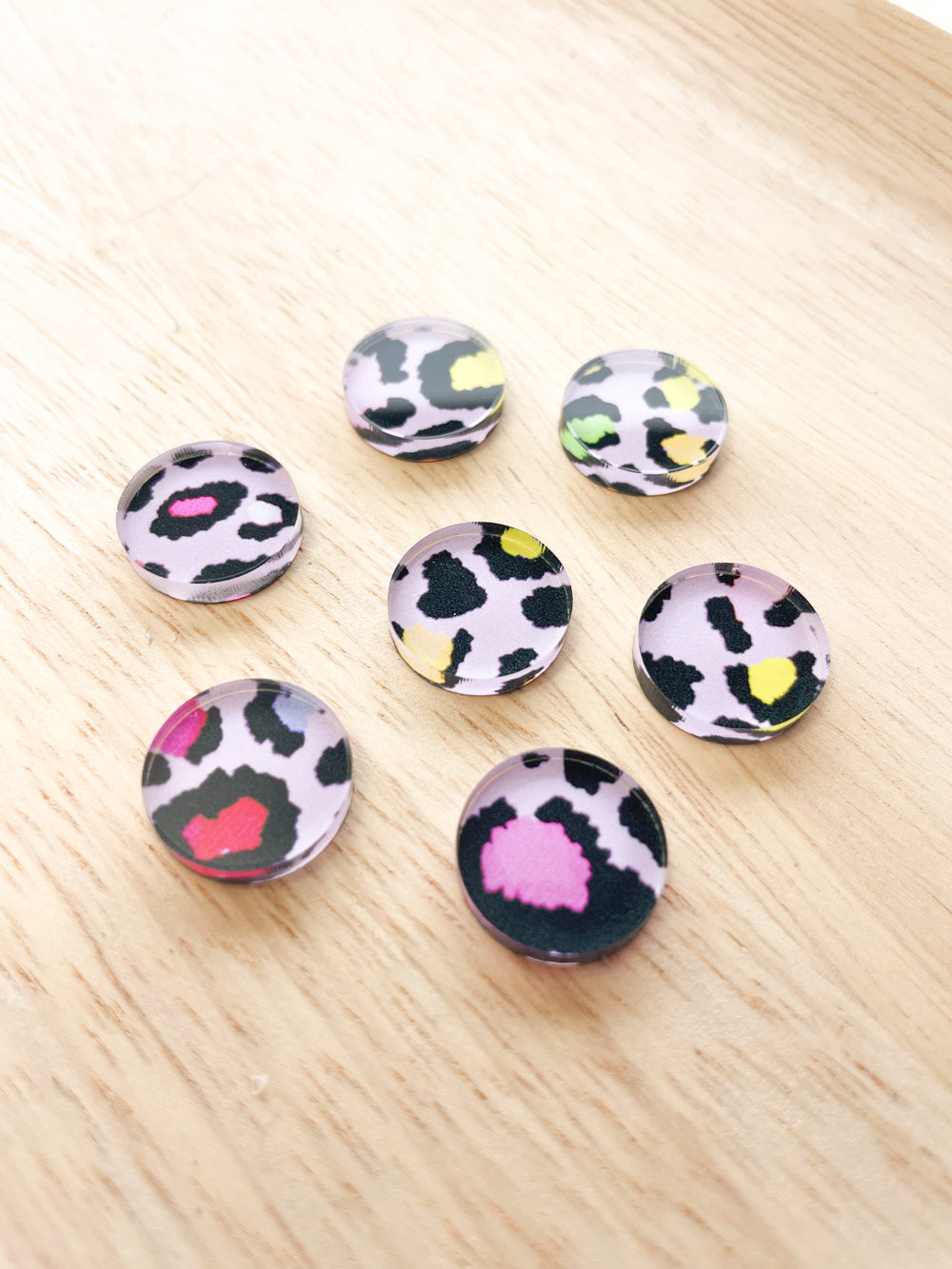 1.5cm Circle - Studs- Clear Acrylic - Leopard - 20