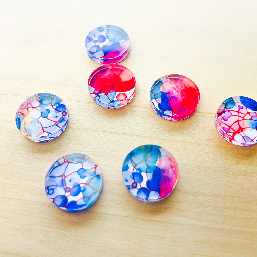 1.5cm Circle - Studs - Clear Acrylic - Watercolour - 51