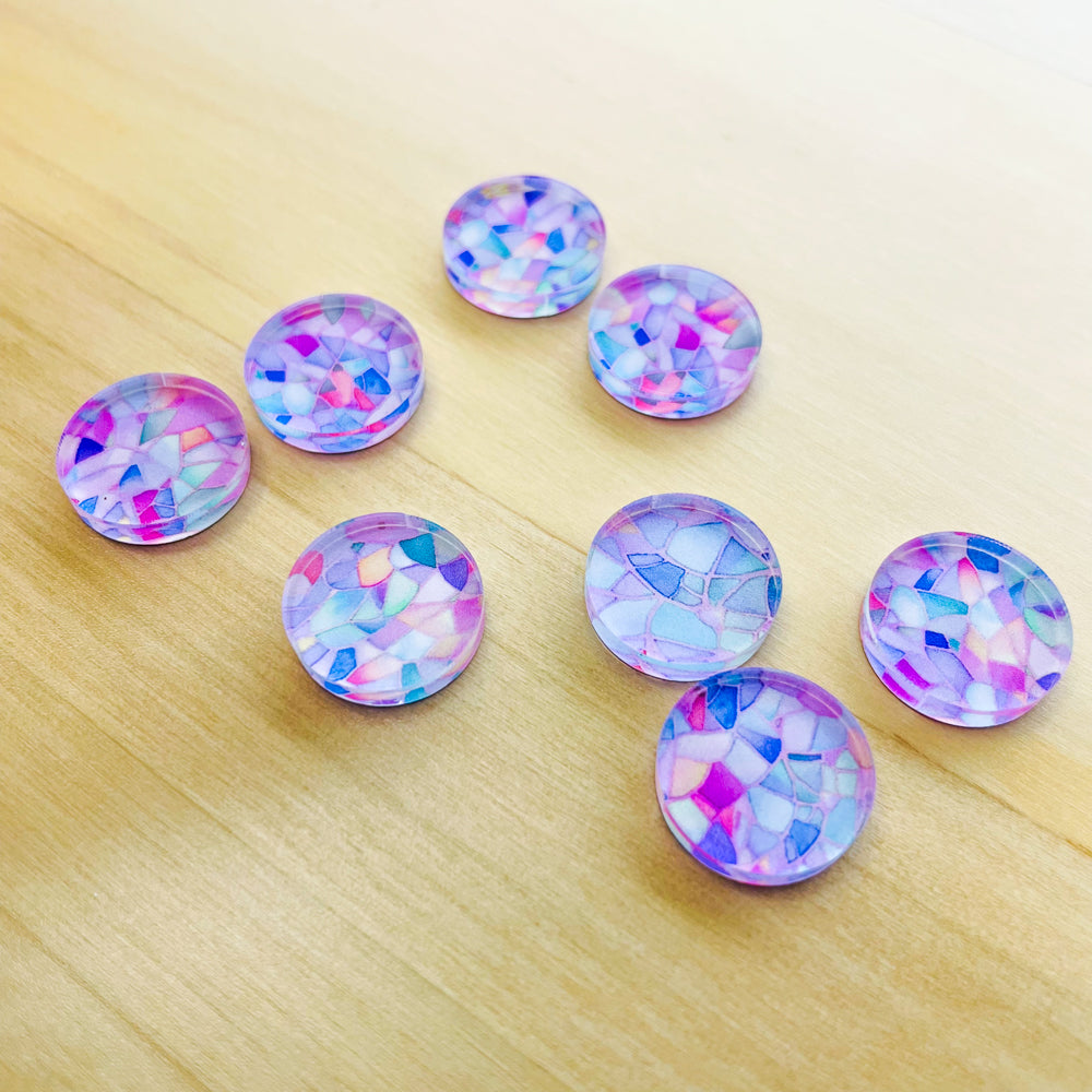 1.5cm Circle - Studs - Clear Acrylic - Watercolour - 76