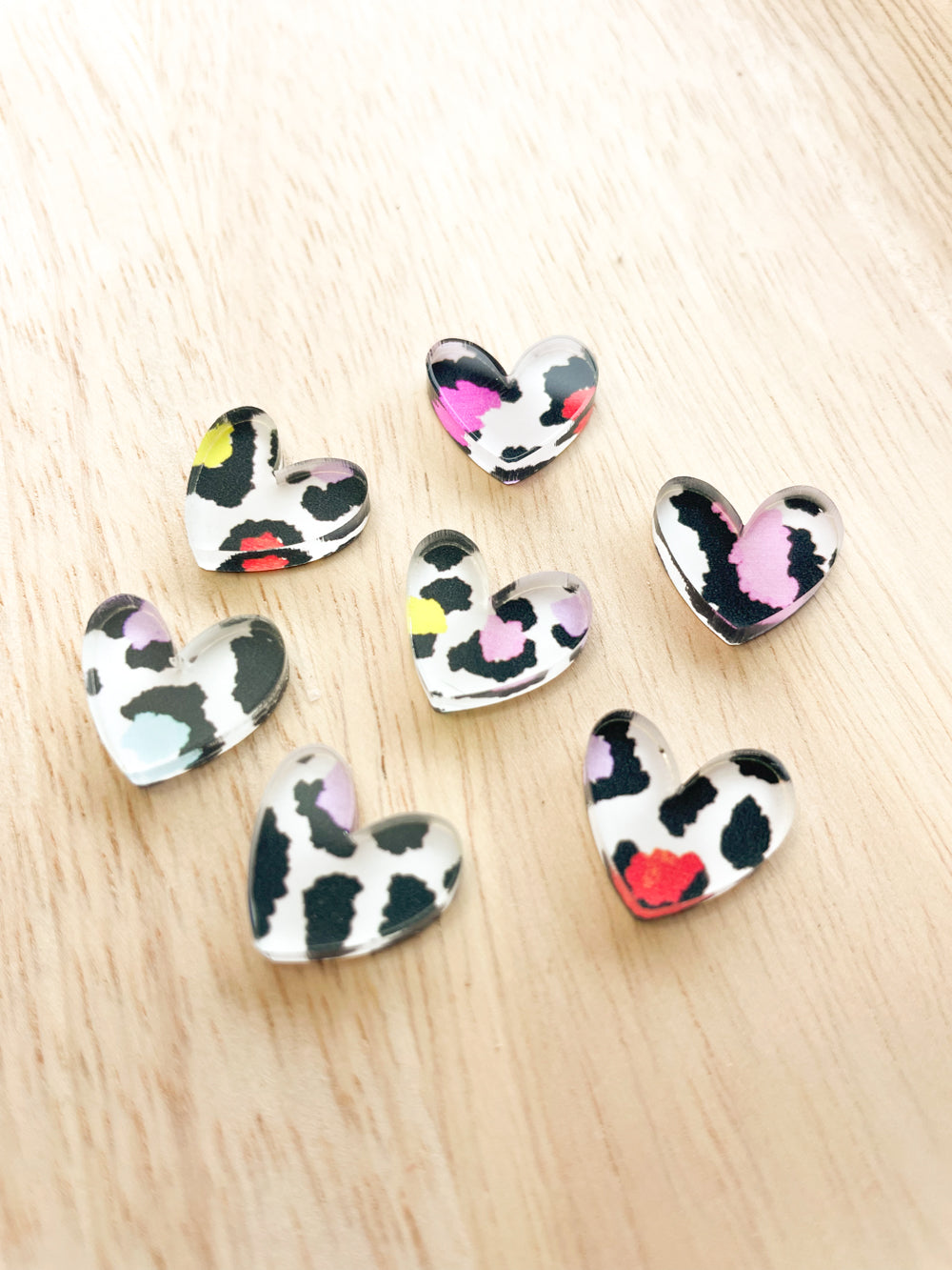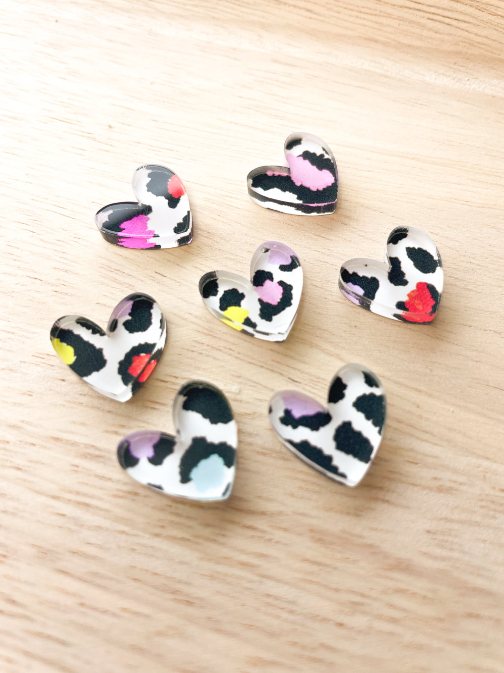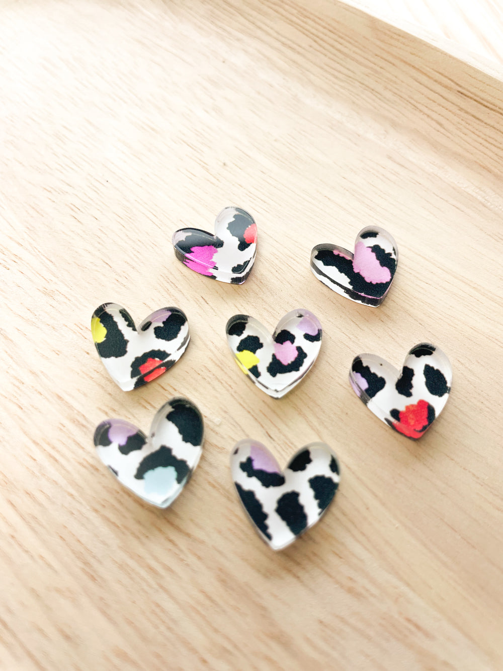 1.5cm Heart 2 - Studs- Clear Acrylic - Leopard - 18