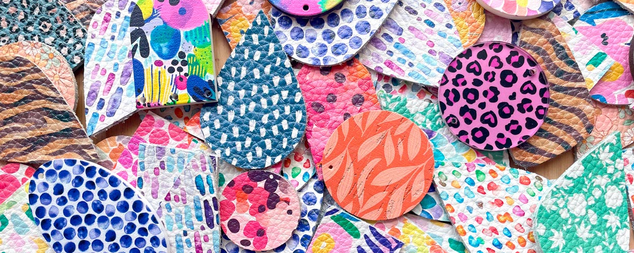 Our patterns can be printed onto Genuine Cowhide Leather, Double Sided Cork, Pine Plywood, White Acrylic or Clear Acrylic or Yupo Paper sheets or earring blanks for making your own earrings. Simply add your own embellishments and findings to make them truly your own.