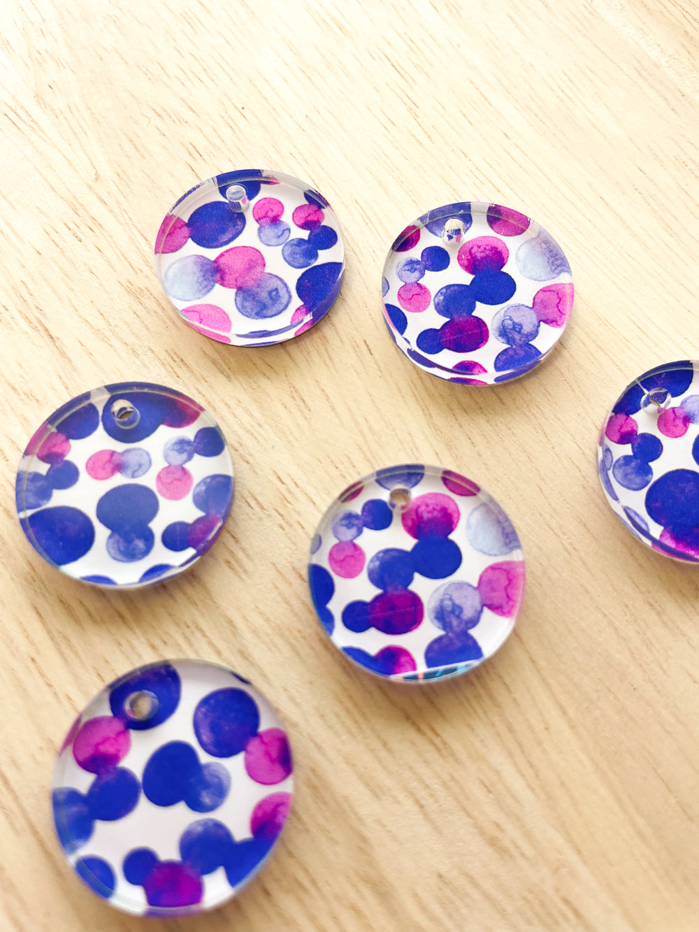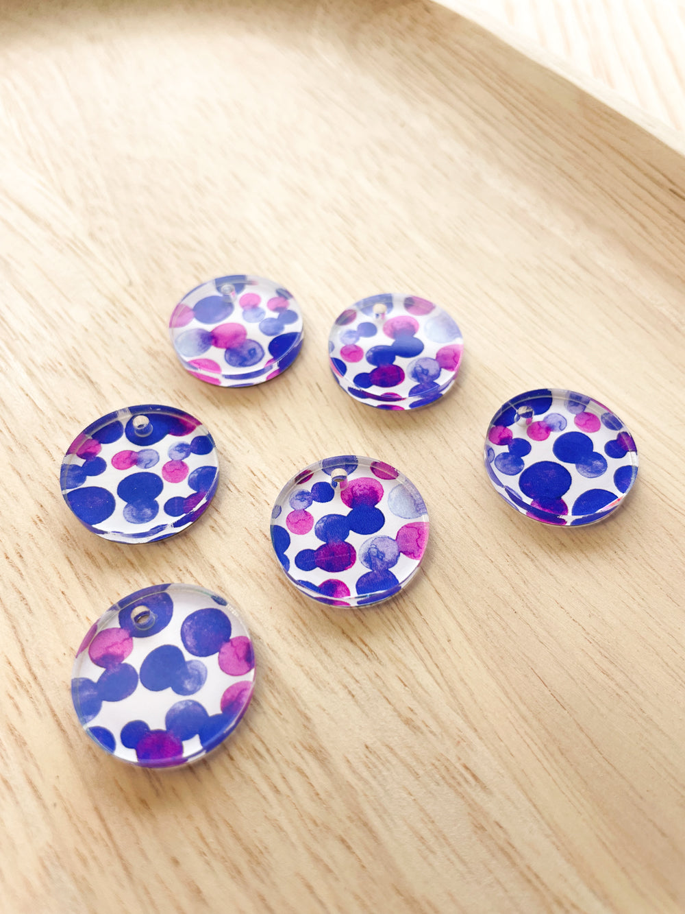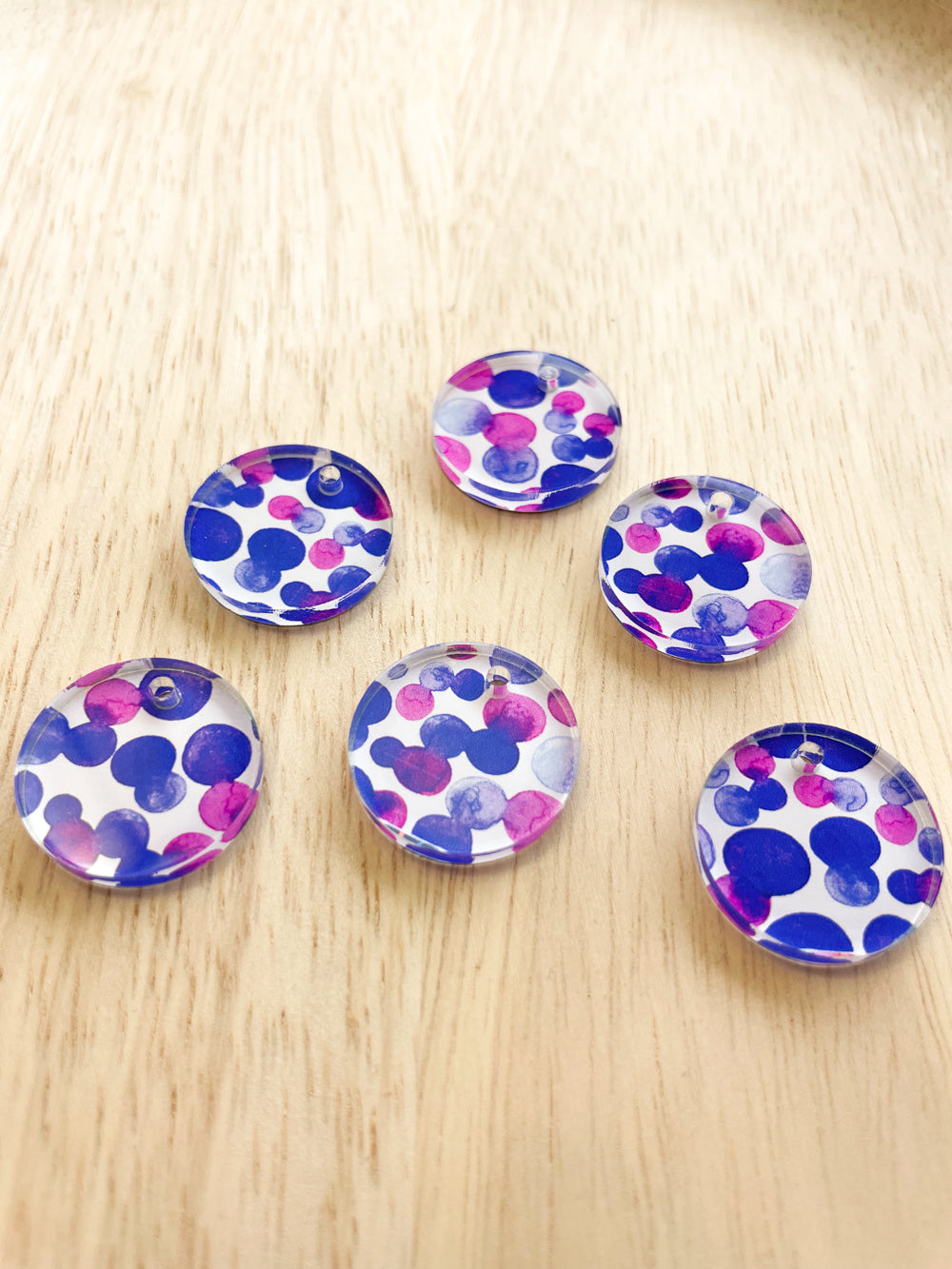 2cm Circle - Clear Acrylic - 1 Hole - Watercolour - 70