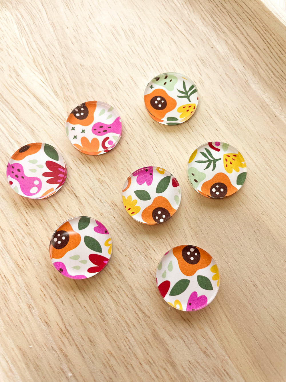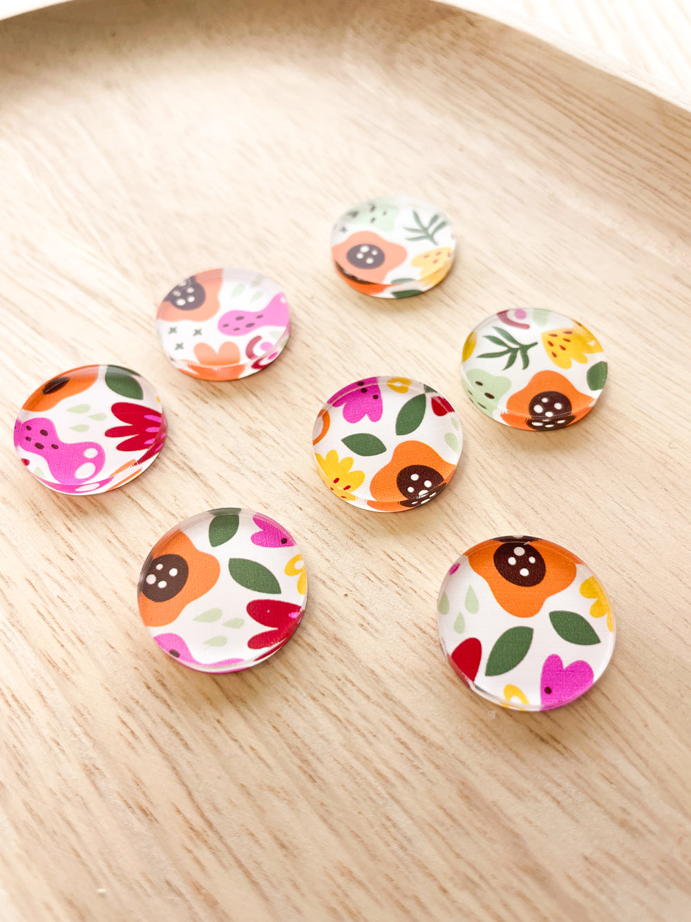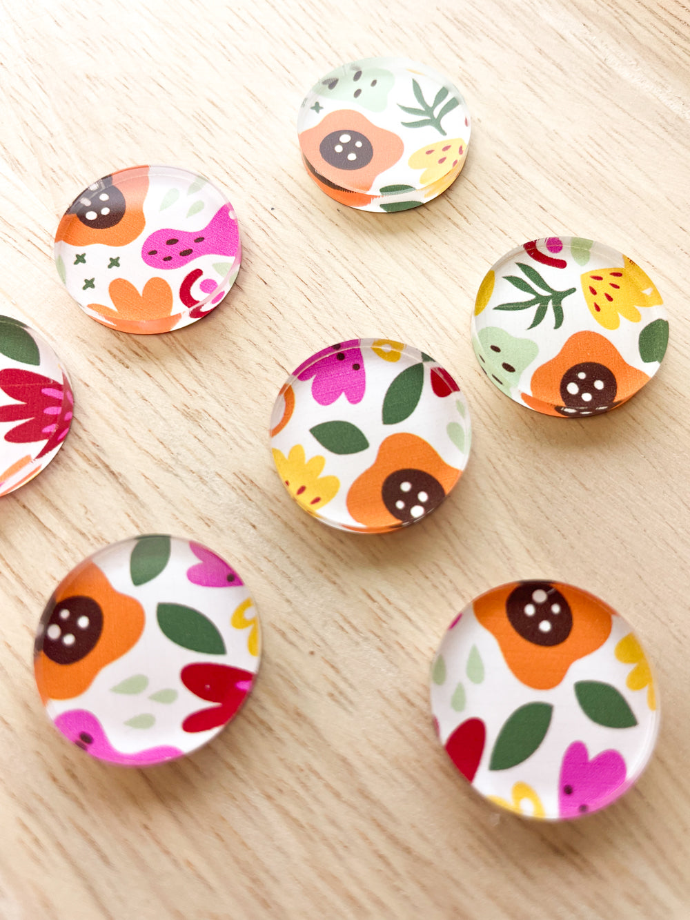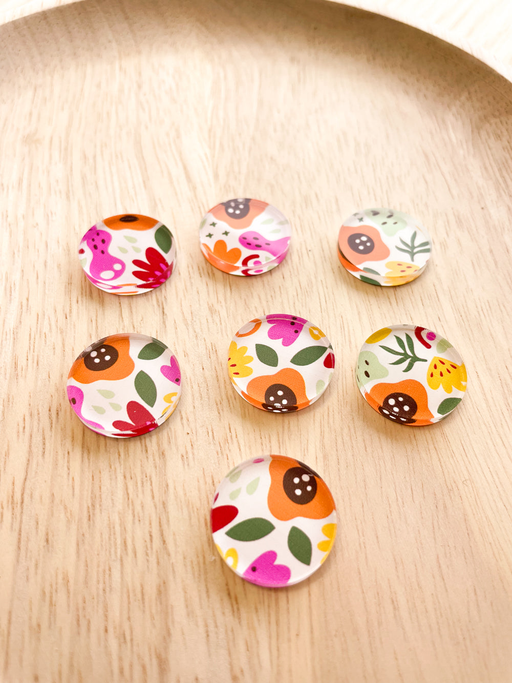 2cm Circle - Clear Acrylic - Studs - Abstract Floral - 65