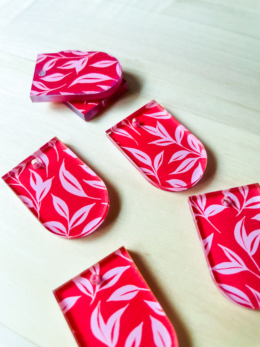 Our patterns can be printed onto Genuine Cowhide Leather, Double Sided Cork, Pine Plywood, White Acrylic or Clear Acrylic or Yupo Paper sheets or earring blanks for making your own earrings. Simply add your own embellishments and findings to make them truly your own.
