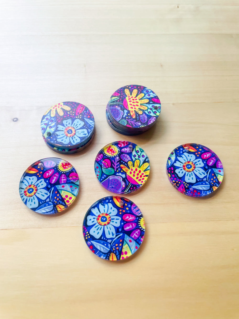 3cm Circle - Clear Acrylic - 1 Hole - Bold Floral - 94