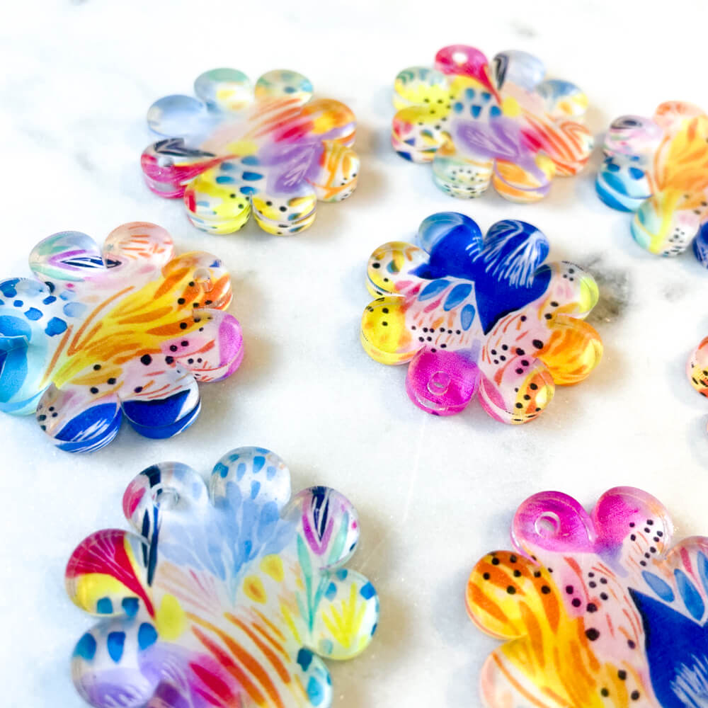 Clear Acrylic - 3cm - Flower - 1 Hole - Bold Floral - 77