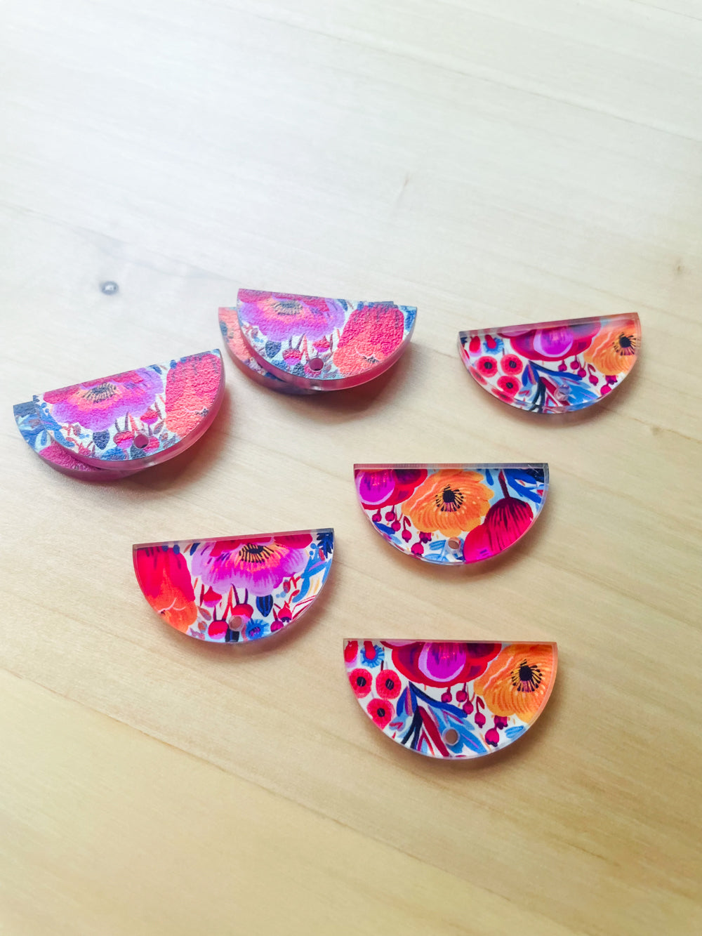 3x1.5cm - Semi Circle - Clear Acrylic - 1 Hole at Top - Bold Floral - 64