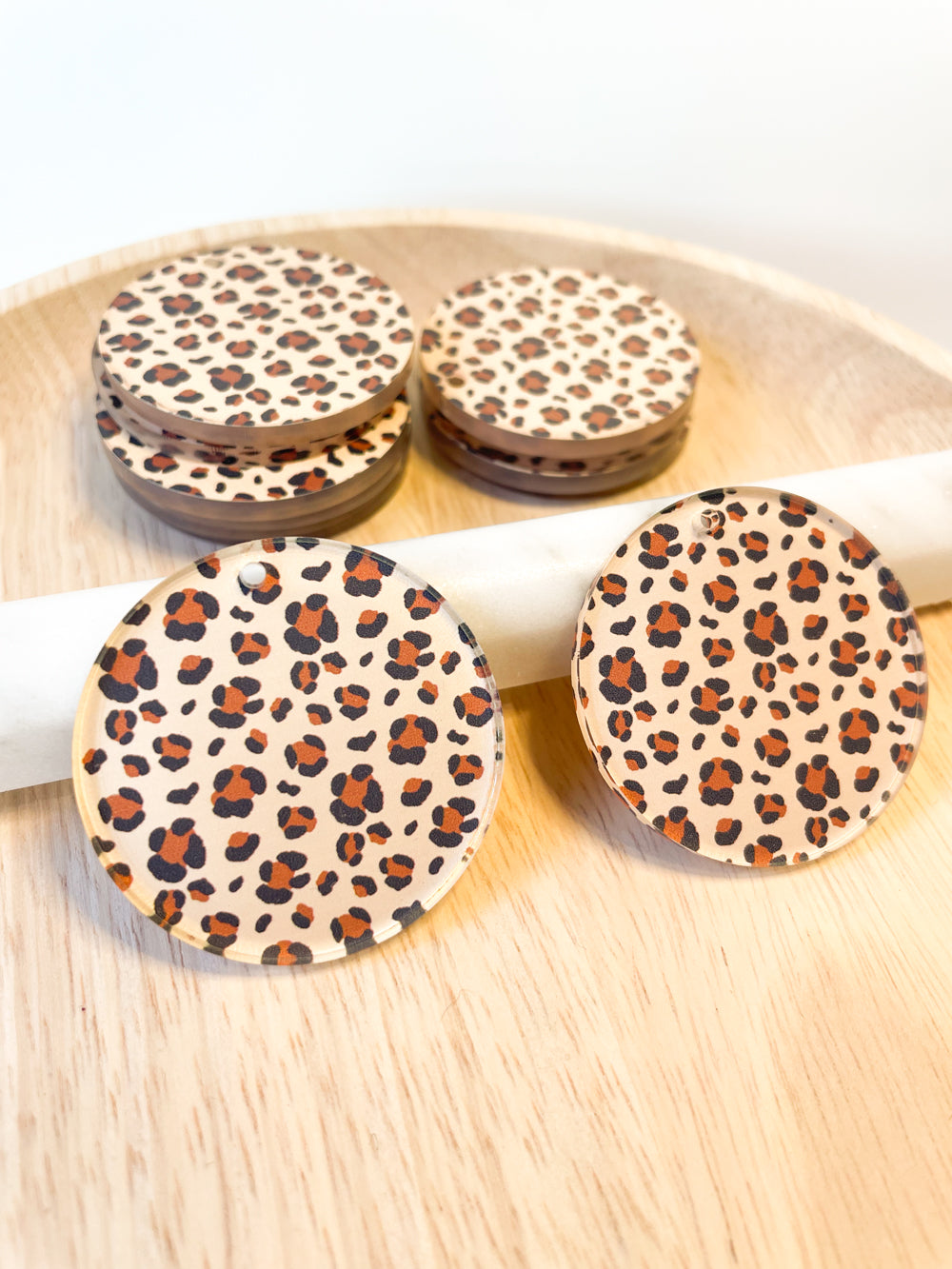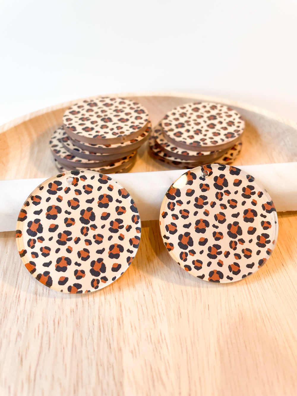 4cm Circle - Clear Acrylic - 1 Hole - Leopard - 63