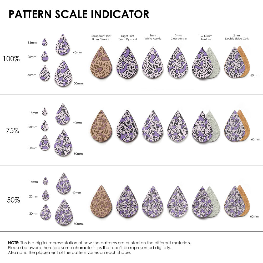 Our patterns can be printed onto Genuine Cowhide Leather, Double Sided Cork, Pine Plywood, White Acrylic or Clear Acrylic or Yupo Paper sheets or earring blanks for making your own earrings. Simply add your own embellishments and findings to make them truly your own.