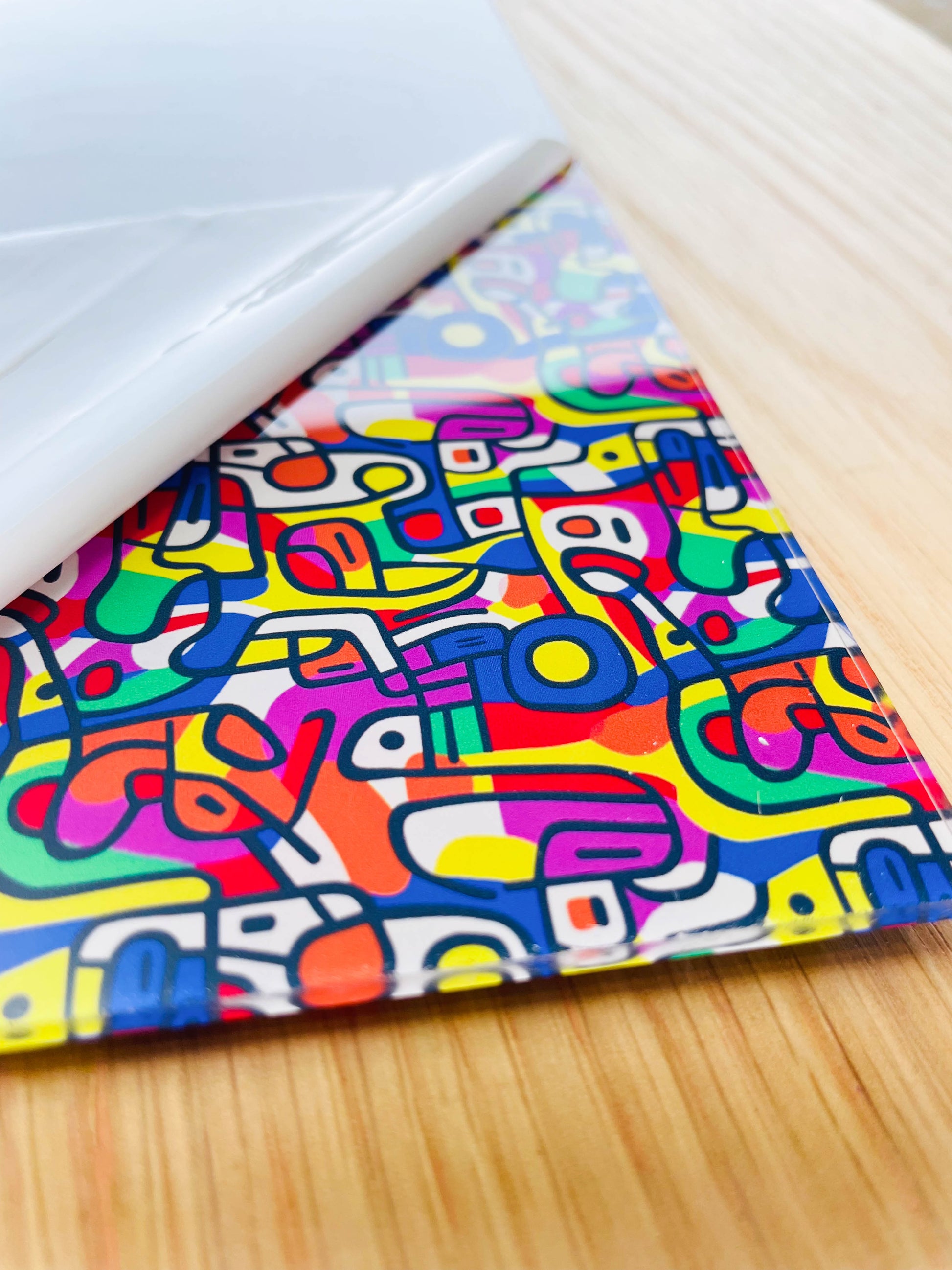 The pattern is printed on the back side of the clear acrylic. You will see the pattern through the acrylic which gives it a beautiful gloss finish.