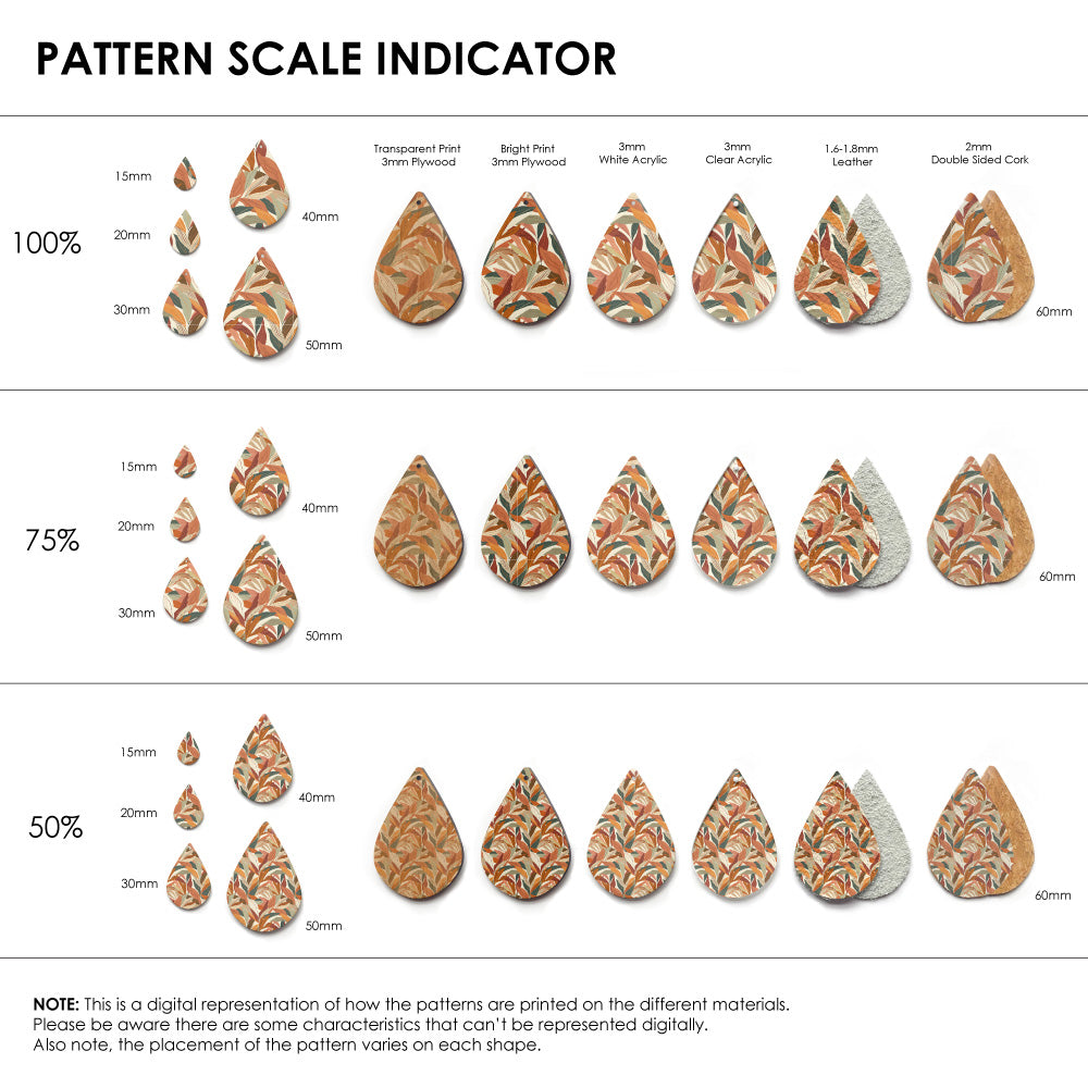 The catalogue image shown is one repeat. If the pattern is seamless, we repeat the pattern to fit to the sheet size, and then scale it so it is suitable for small pieces like earrings.