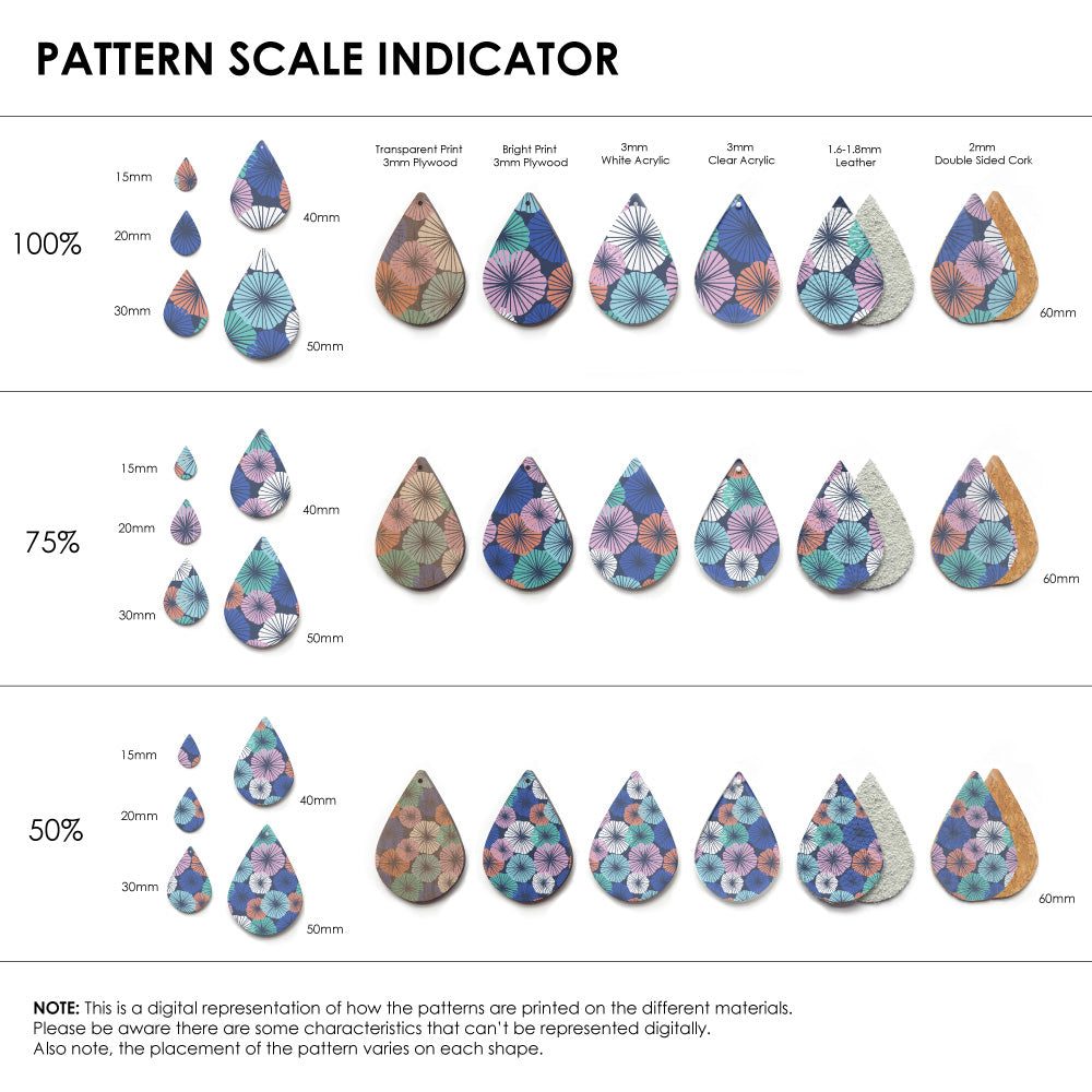 Our patterns can be printed onto Genuine Cowhide Leather, Double Sided Cork, Pine Plywood, White Acrylic or Clear Acrylic or Yupo Paper sheets or earring blanks for making your own earrings. Simply add your own embellishments and findings to make them truly your own.