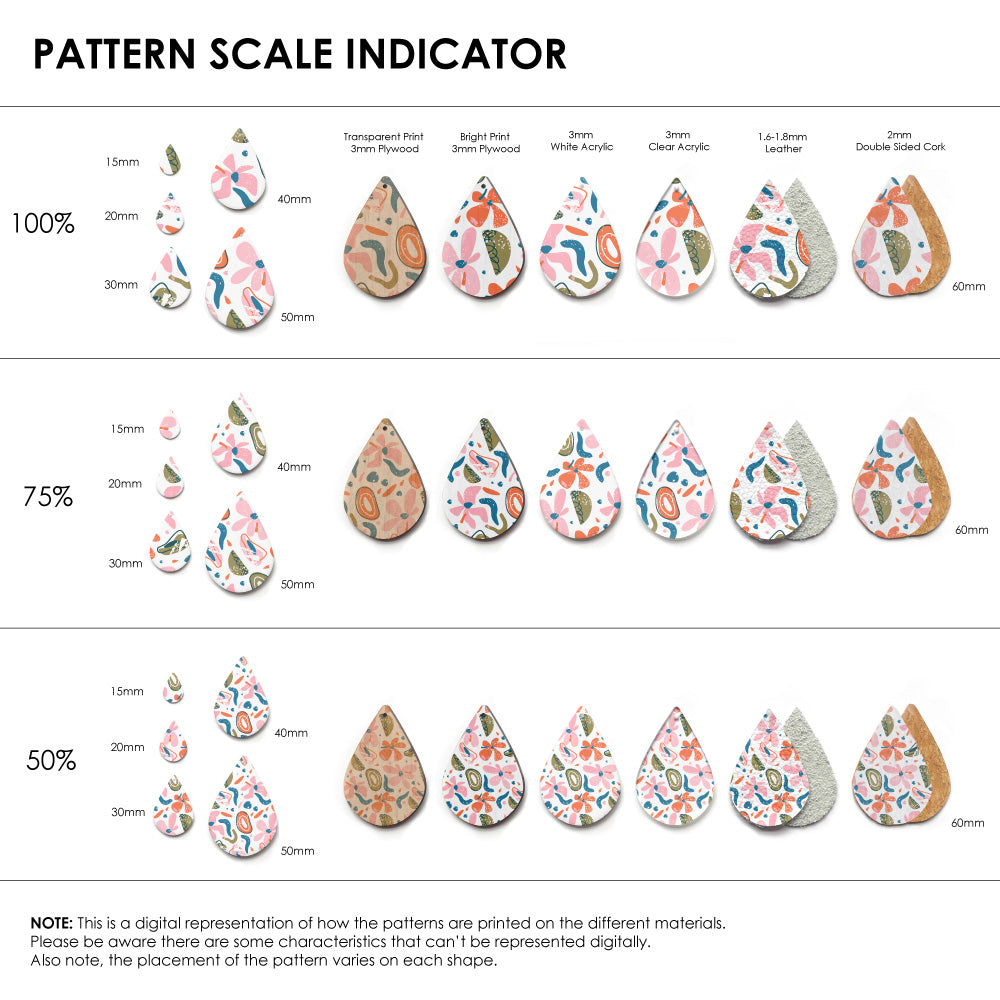 Our patterns can be printed onto Genuine Cowhide Leather, Double Sided Cork, Pine Plywood, White Acrylic or Clear Acrylic or Yupo Paper sheets or earring blanks for making your own earrings. Simply add your own embellishments and findings to make them truly your own.