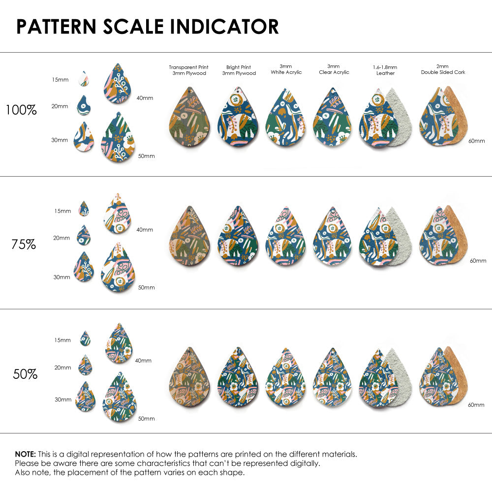 Our patterns can be printed onto Genuine Cowhide Leather, Double Sided Cork, Pine Plywood, White Acrylic or Clear Acrylic or Yupo Paper sheets or earring blanks for making your own earrings. Simply add your own embellishments and findings to make them truly your own.