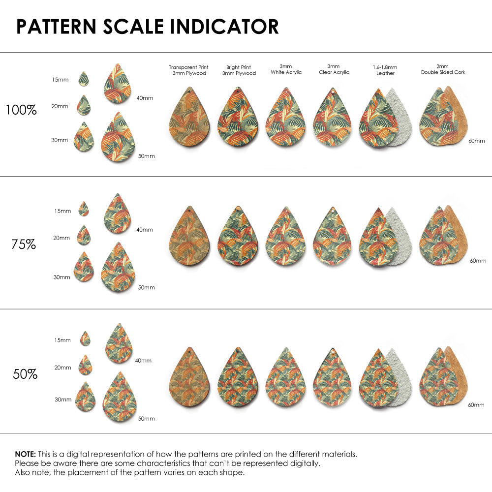 Our patterns can be printed onto Genuine Cowhide Leather, Double Sided Cork, Pine Plywood, White Acrylic or Clear Acrylic or Yupo Paper sheets or earring blanks for making your own earrings. Simply add your own embellishments and findings to make them truly your own.