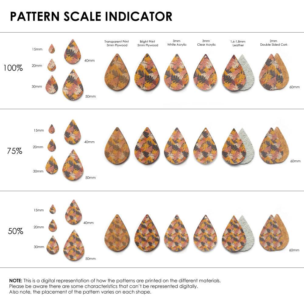 Our patterns can be printed onto Genuine Cowhide Leather, Double Sided Cork, Pine Plywood, White Acrylic or Clear Acrylic or Yupo Paper sheets or earring blanks for making your own earrings. Simply add your own embellishments and findings to make them truly your own.