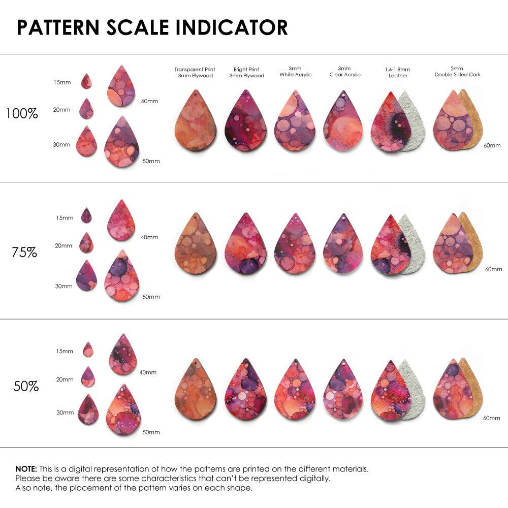 Our patterns can be printed onto Genuine Cowhide Leather, Double Sided Cork, Pine Plywood, White Acrylic or Clear Acrylic or Yupo Paper sheets or earring blanks for making your own earrings. Simply add your own embellishments and findings to make them truly your own.