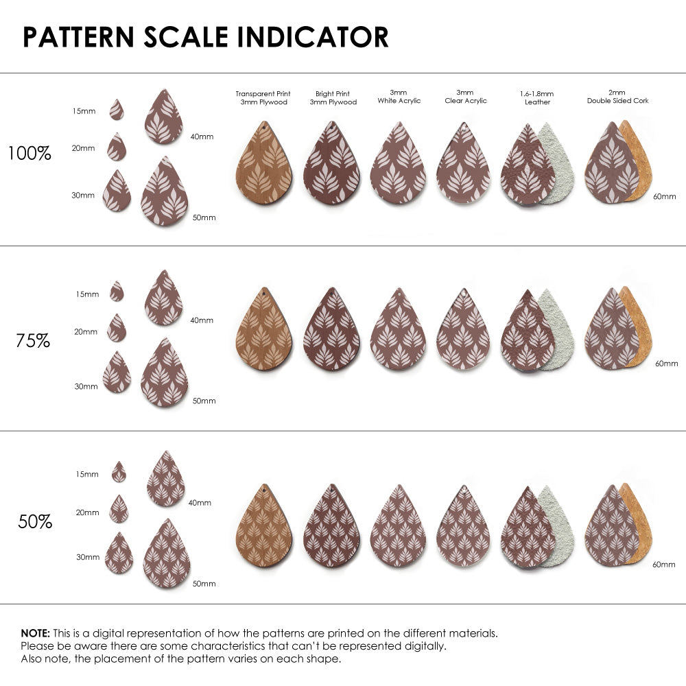 The catalogue image shown is one repeat. If the pattern is seamless, we repeat the pattern to fit to the sheet size, and then scale it so it is suitable for small pieces like earrings.