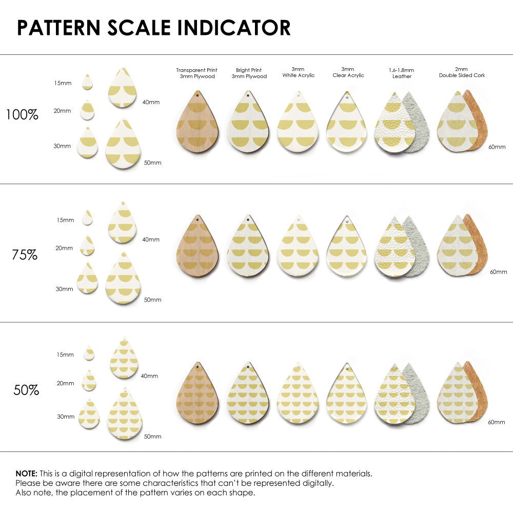The catalogue image shown is one repeat. If the pattern is seamless, we repeat the pattern to fit to the sheet size, and then scale it so it is suitable for small pieces like earrings.