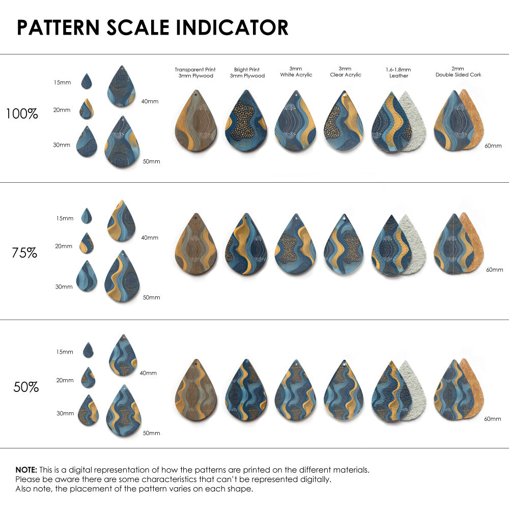 Our patterns can be printed onto Genuine Cowhide Leather, Double Sided Cork, Pine Plywood, White Acrylic or Clear Acrylic or Yupo Paper sheets or earring blanks for making your own earrings. Simply add your own embellishments and findings to make them truly your own.