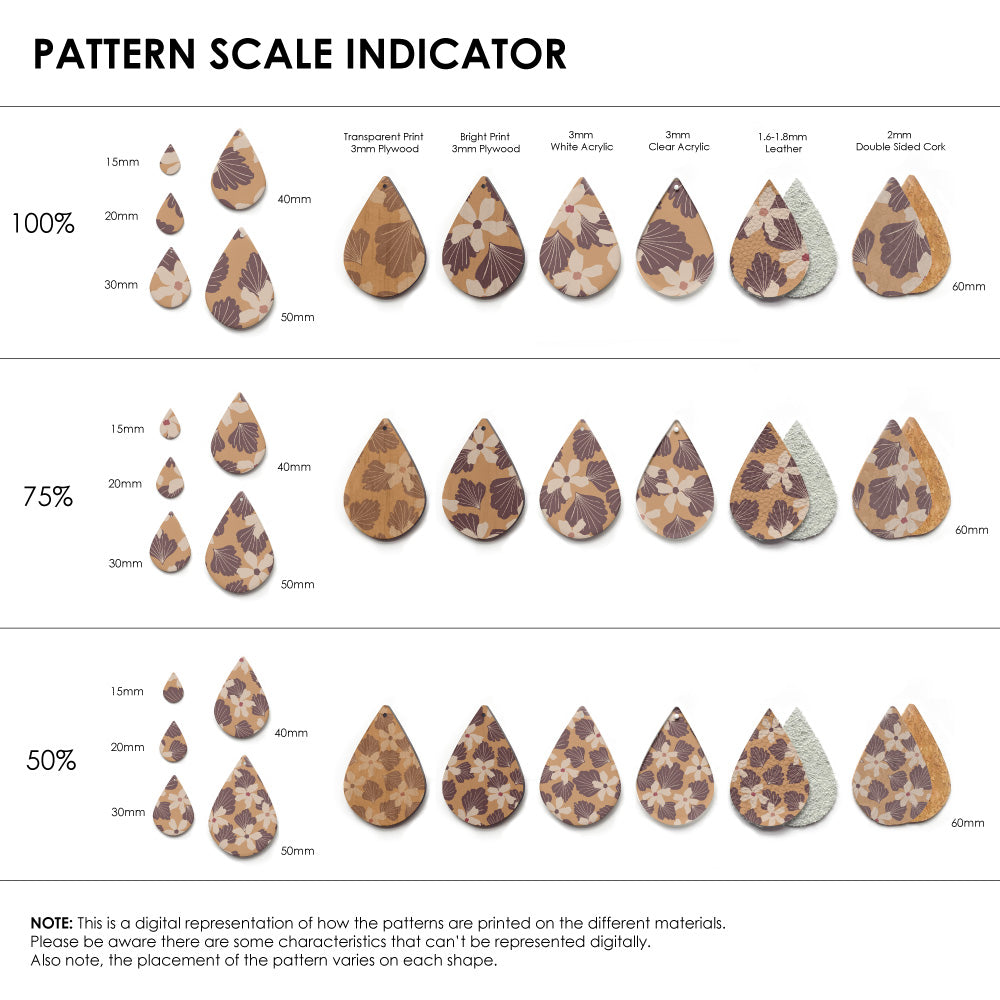 Our patterns can be printed onto Genuine Cowhide Leather, Double Sided Cork, Pine Plywood, White Acrylic or Clear Acrylic or Yupo Paper sheets or earring blanks for making your own earrings. Simply add your own embellishments and findings to make them truly your own.