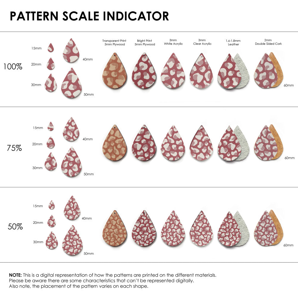 Our patterns can be printed onto Genuine Cowhide Leather, Double Sided Cork, Pine Plywood, White Acrylic or Clear Acrylic or Yupo Paper sheets or earring blanks for making your own earrings. Simply add your own embellishments and findings to make them truly your own.