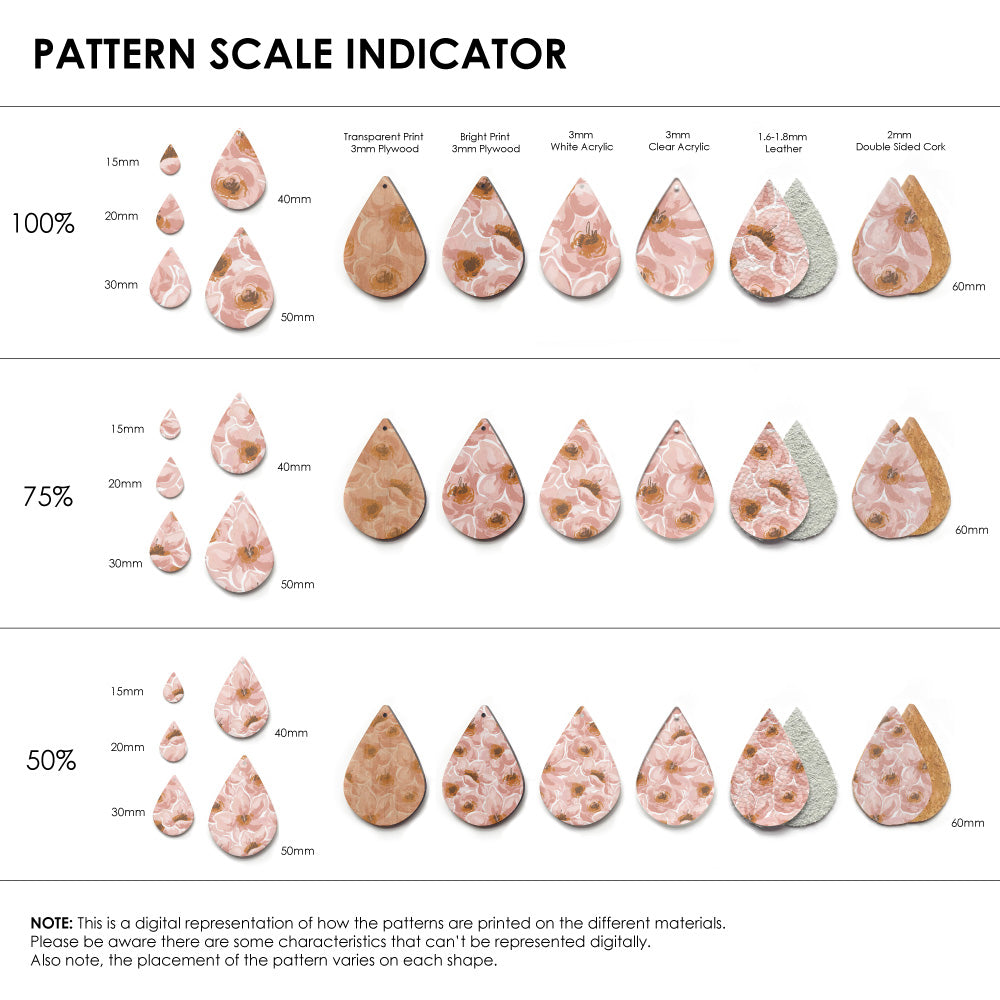 Our patterns can be printed onto Genuine Cowhide Leather, Double Sided Cork, Pine Plywood, White Acrylic or Clear Acrylic or Yupo Paper sheets or earring blanks for making your own earrings. Simply add your own embellishments and findings to make them truly your own.