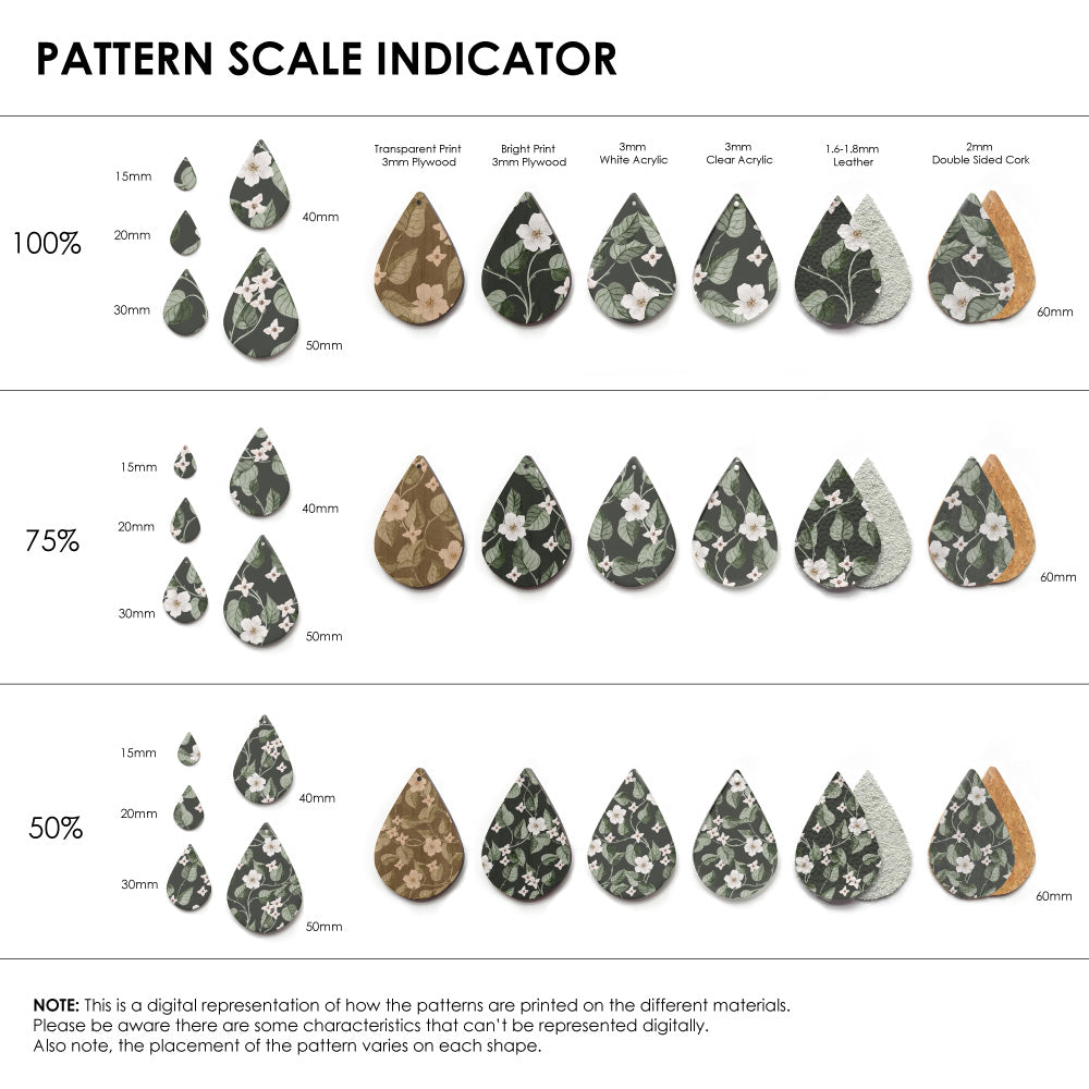 Our patterns can be printed onto Genuine Cowhide Leather, Double Sided Cork, Pine Plywood, White Acrylic or Clear Acrylic or Yupo Paper sheets or earring blanks for making your own earrings. Simply add your own embellishments and findings to make them truly your own.