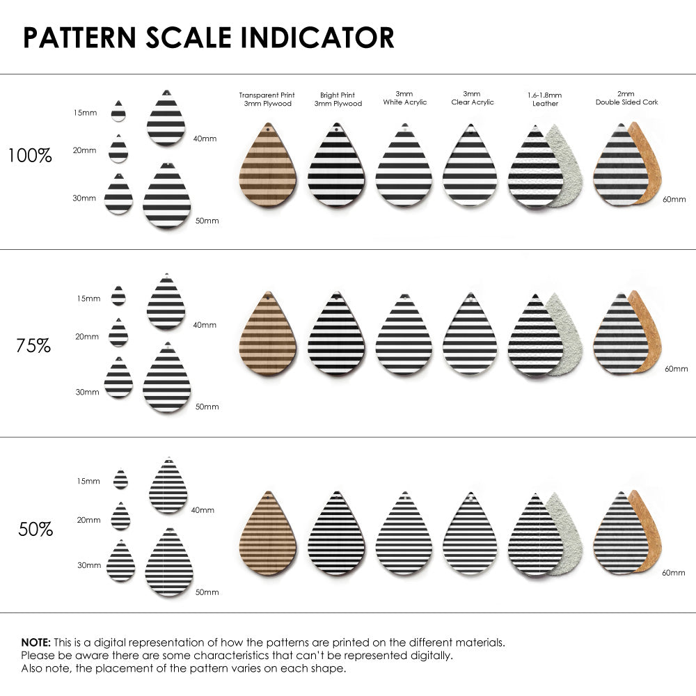 Our patterns can be printed onto Genuine Cowhide Leather, Double Sided Cork, Pine Plywood, White Acrylic or Clear Acrylic or Yupo Paper sheets or earring blanks for making your own earrings. Simply add your own embellishments and findings to make them truly your own.