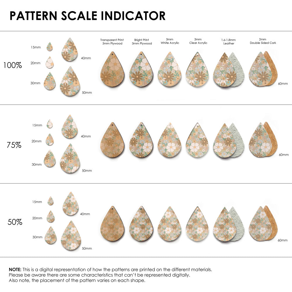 Our patterns can be printed onto Genuine Cowhide Leather, Double Sided Cork, Pine Plywood, White Acrylic or Clear Acrylic or Yupo Paper sheets or earring blanks for making your own earrings. Simply add your own embellishments and findings to make them truly your own.
