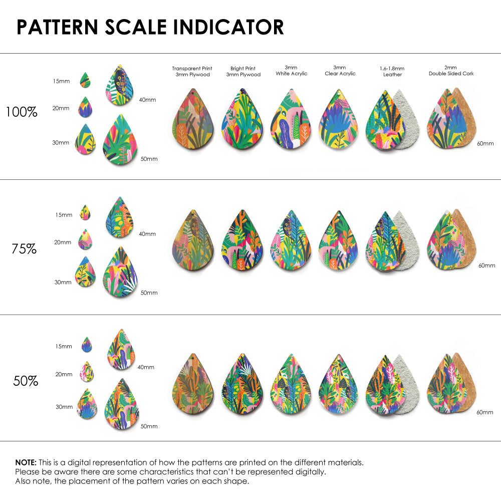 Our patterns can be printed onto Genuine Cowhide Leather, Double Sided Cork, Pine Plywood, White Acrylic or Clear Acrylic or Yupo Paper sheets or earring blanks for making your own earrings. Simply add your own embellishments and findings to make them truly your own.