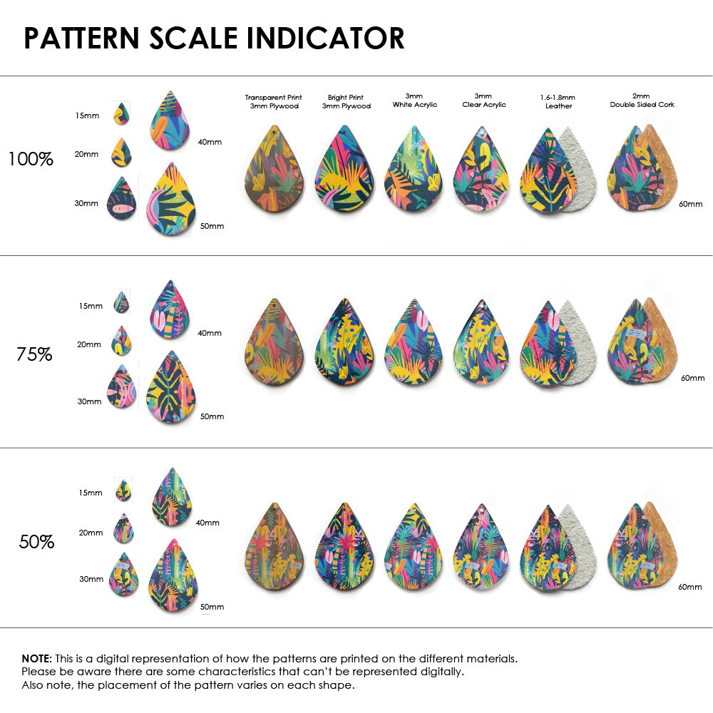 Our patterns can be printed onto Genuine Cowhide Leather, Double Sided Cork, Pine Plywood, White Acrylic or Clear Acrylic or Yupo Paper sheets or earring blanks for making your own earrings. Simply add your own embellishments and findings to make them truly your own.
