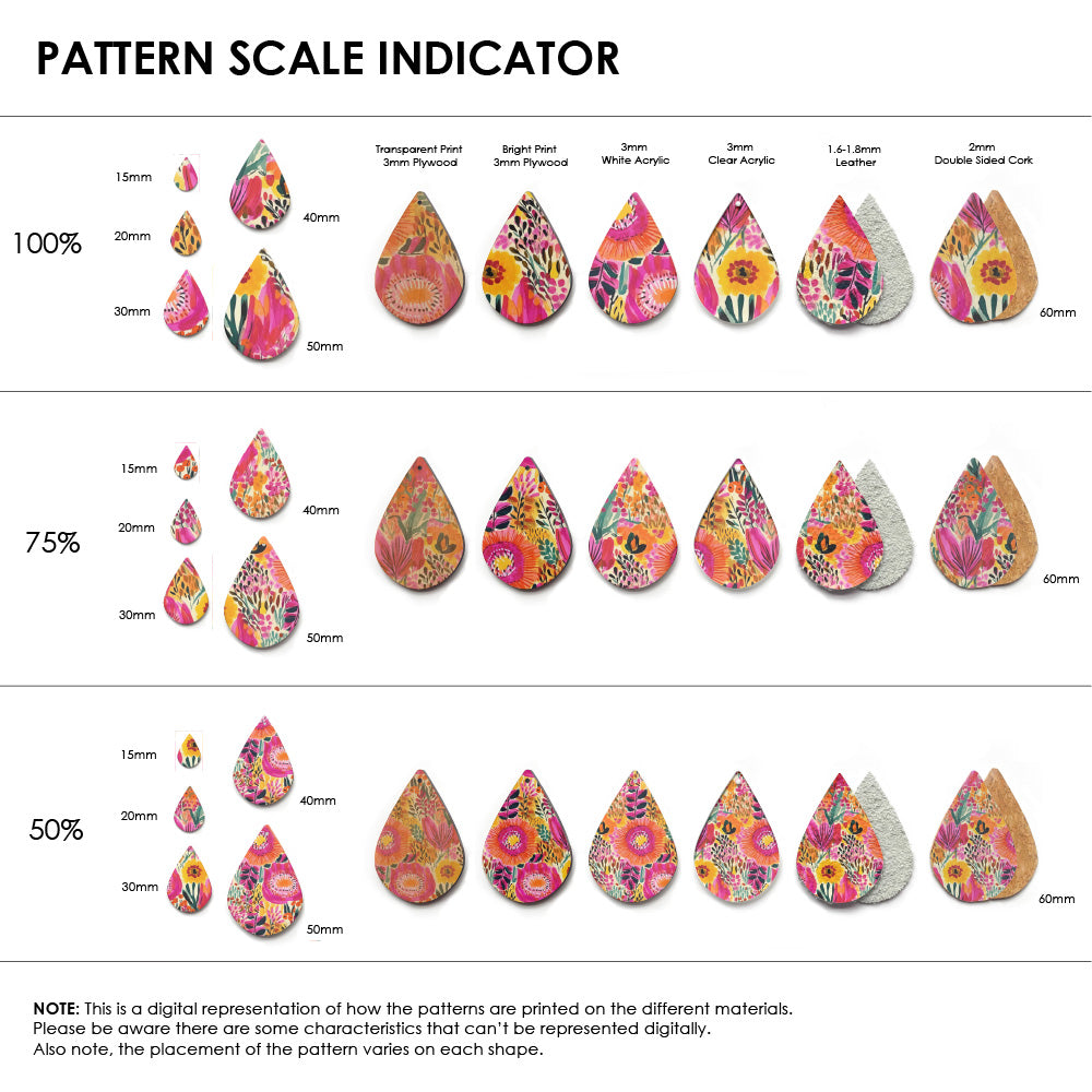 Our patterns can be printed onto Genuine Cowhide Leather, Double Sided Cork, Pine Plywood, White Acrylic or Clear Acrylic or Yupo Paper sheets or earring blanks for making your own earrings. Simply add your own embellishments and findings to make them truly your own.