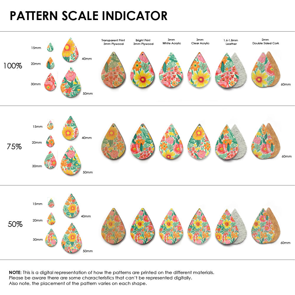 Our patterns can be printed onto Genuine Cowhide Leather, Double Sided Cork, Pine Plywood, White Acrylic or Clear Acrylic or Yupo Paper sheets or earring blanks for making your own earrings. Simply add your own embellishments and findings to make them truly your own.