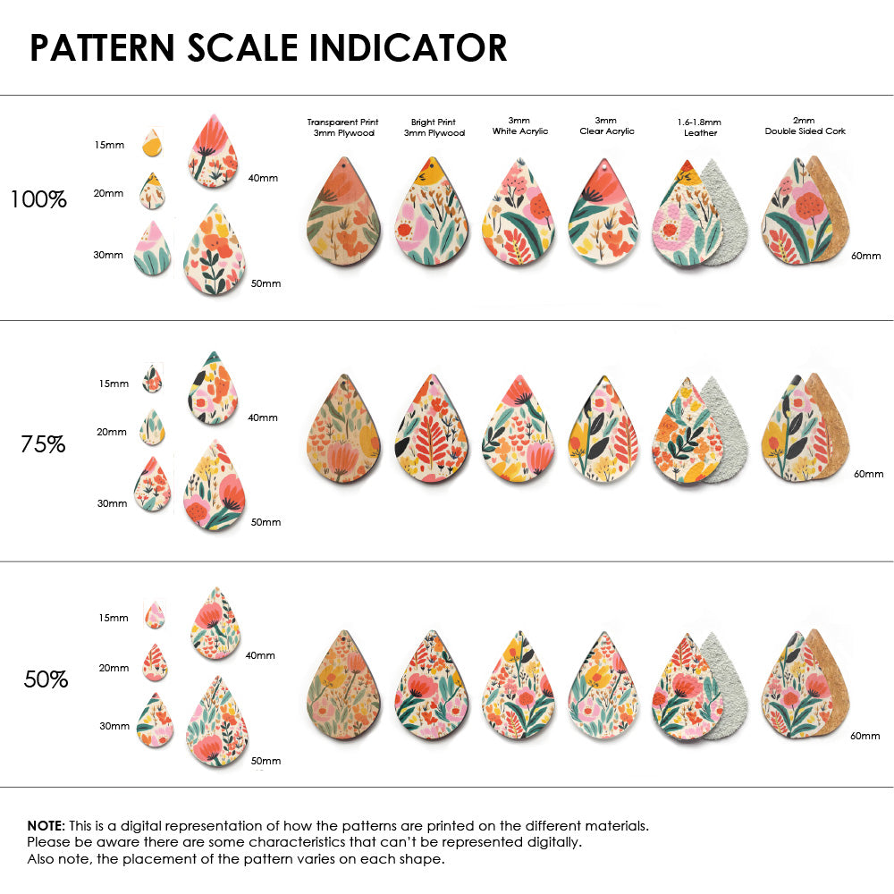 Our patterns can be printed onto Genuine Cowhide Leather, Double Sided Cork, Pine Plywood, White Acrylic or Clear Acrylic or Yupo Paper sheets or earring blanks for making your own earrings. Simply add your own embellishments and findings to make them truly your own.