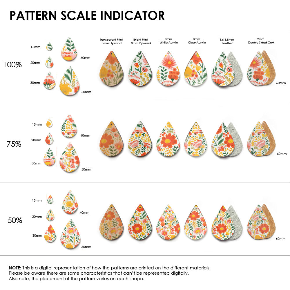 Our patterns can be printed onto Genuine Cowhide Leather, Double Sided Cork, Pine Plywood, White Acrylic or Clear Acrylic or Yupo Paper sheets or earring blanks for making your own earrings. Simply add your own embellishments and findings to make them truly your own.