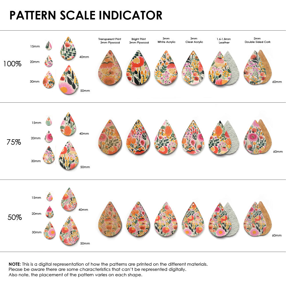 Our patterns can be printed onto Genuine Cowhide Leather, Double Sided Cork, Pine Plywood, White Acrylic or Clear Acrylic or Yupo Paper sheets or earring blanks for making your own earrings. Simply add your own embellishments and findings to make them truly your own.