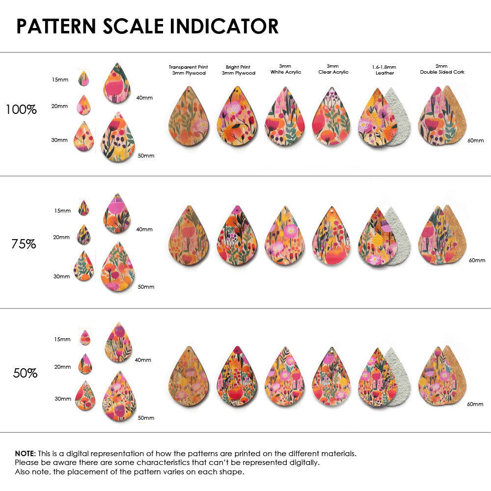 Our patterns can be printed onto Genuine Cowhide Leather, Double Sided Cork, Pine Plywood, White Acrylic or Clear Acrylic or Yupo Paper sheets or earring blanks for making your own earrings. Simply add your own embellishments and findings to make them truly your own.