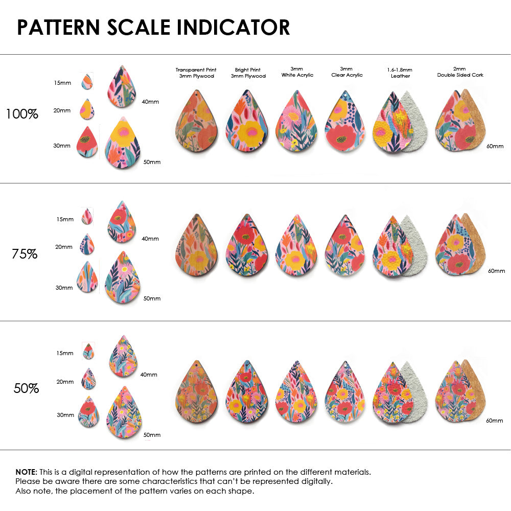 Our patterns can be printed onto Genuine Cowhide Leather, Double Sided Cork, Pine Plywood, White Acrylic or Clear Acrylic or Yupo Paper sheets or earring blanks for making your own earrings. Simply add your own embellishments and findings to make them truly your own.