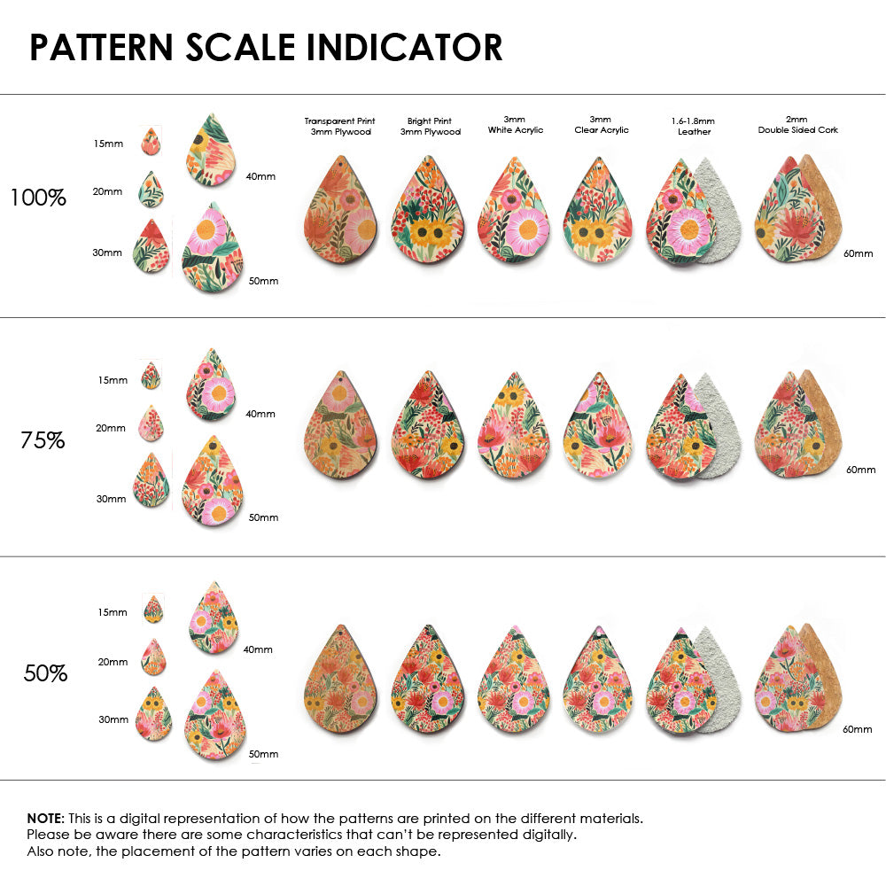 Our patterns can be printed onto Genuine Cowhide Leather, Double Sided Cork, Pine Plywood, White Acrylic or Clear Acrylic or Yupo Paper sheets or earring blanks for making your own earrings. Simply add your own embellishments and findings to make them truly your own.